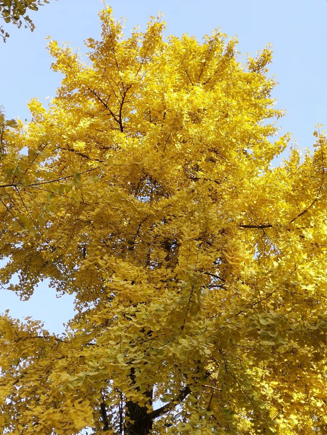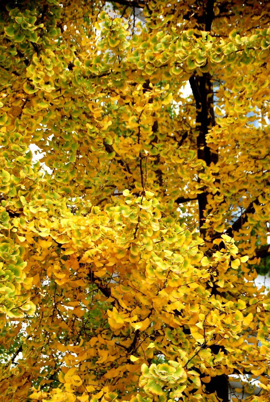 银杏成熟时,飒爽英姿,如兵临城下,满城尽带黄金甲:凛然着威风,波澜不惊,又从容淡定。银杏一边呈现出让人炫目的金色,一边飘下无数的落叶,铺成了一地锦绣。在冬天日渐萧瑟的大地上,旗帜一般鲜明的辉煌着。