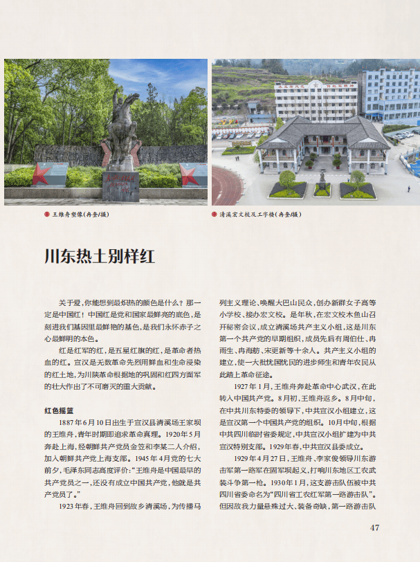 红是红军的红,是五星红旗的红,是革命者热血的红。宣汉是无数革命先烈用鲜血和生命浸染的红土地,为川陕革命根据地的巩固和红四方面军的壮大作出了不可磨灭的重大贡献。