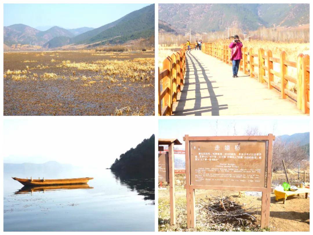 走婚桥,原名草海桥,横跨草海南北,是摩梭“阿夏”走婚的重要通道。近年,随着外界对泸沽湖的认识和“走婚”知名度的提高,这座长300余米的木桥承载着人们对爱和幸福的希望,戴上了 “天下第一爱情鹊桥”的桂冠。早晨或傍晚,你漫步在长长的桥上,可以看见摩梭男儿晚出早归的身影,可以理解他们对幸福生活追求的付出。