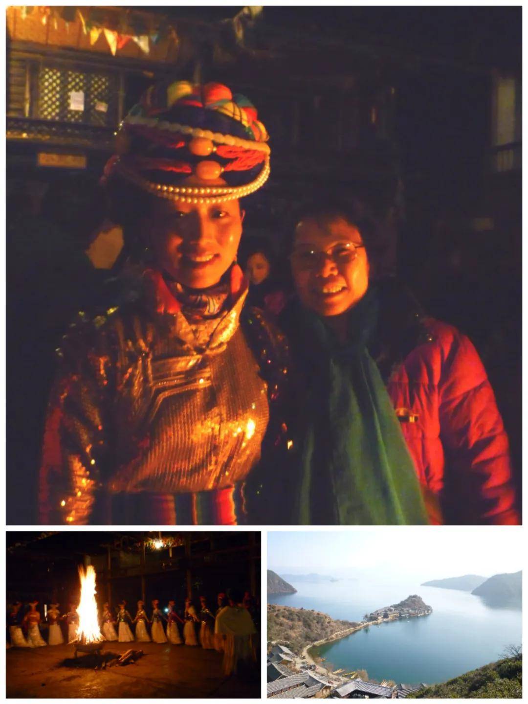 摩梭姑娘和作者在篝火晚会上(作者供图)