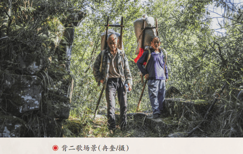 古铜色肌肤闪闪发光,汗如雨下洒在古道上,负重前行、路途艰险,牛马去不了的大山,却是背二哥一生的诗和远方。