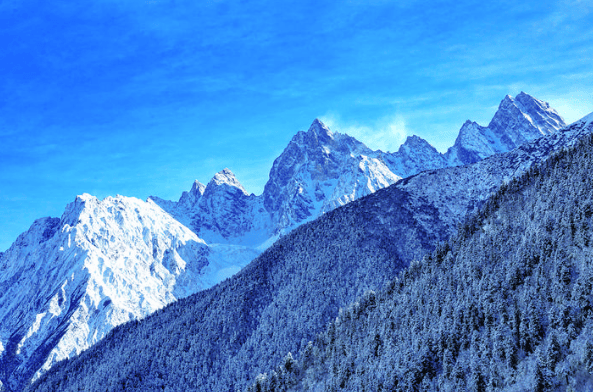 随着朝阳的升高,覆盖树冠的冰雪很快融化,遮蔽丛林的云雾渐渐聚合上升到雪山之巅与蓝天汇合,辽阔的原野和山峦,恢复了绚烂的面目,接天的群山冰清玉洁。此刻的毕棚沟,在蓝天白云下,呈现出半山红叶半山雪的壮美。
