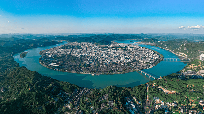 山环水绕的阆中古城(任冠金 摄,图源:人民日报客户端四川频道)