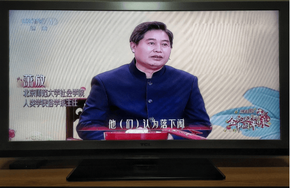北京师范大学社会学院人类学民俗学系主任萧放正月初一在央视综合频道介绍落下闳(孔海京 截屏)