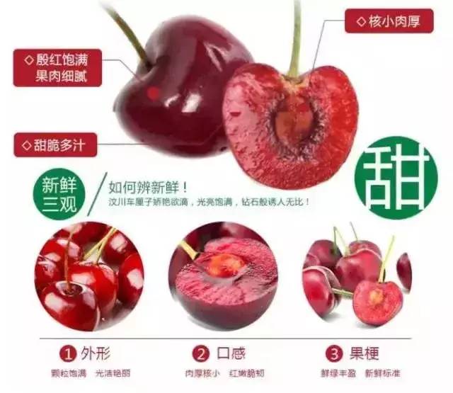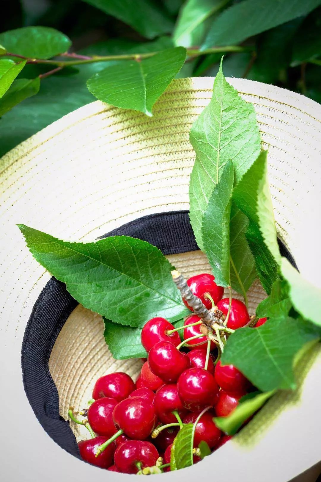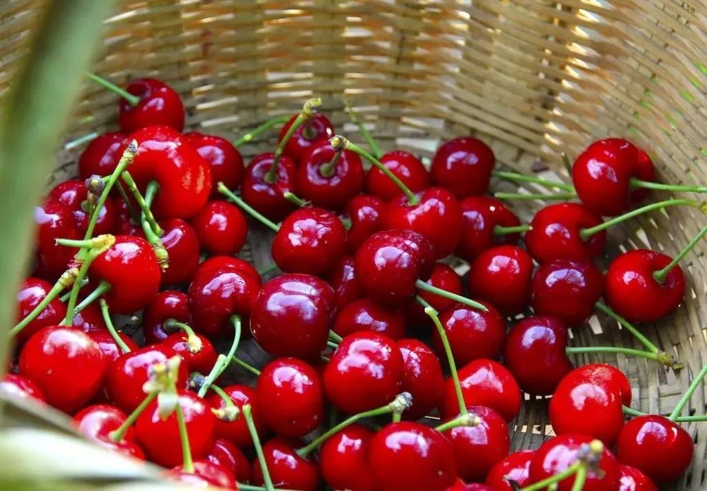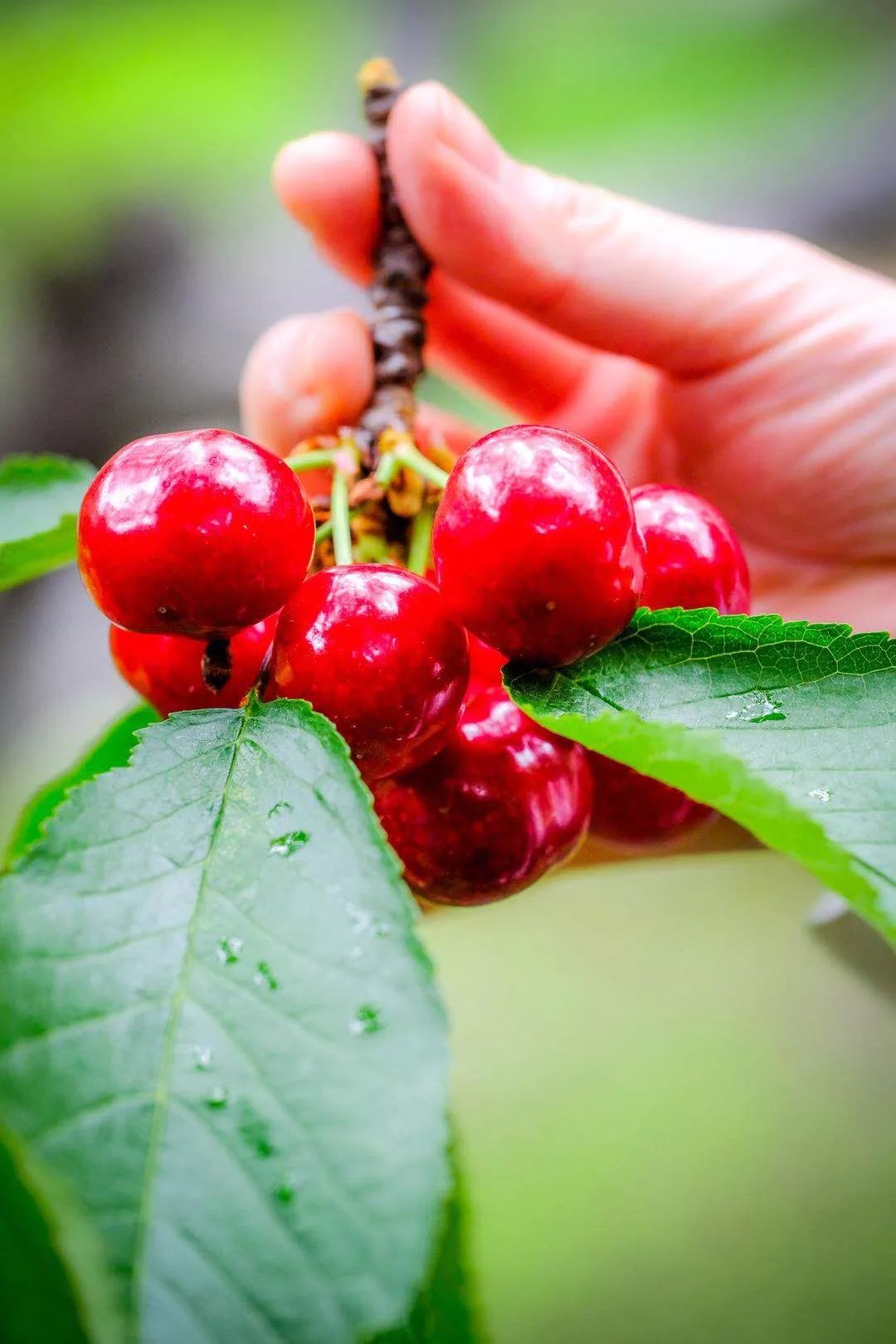 熟透的樱桃个儿大、颜色深,轻轻一捏就溢出汁水来,入口即化,唇齿回甘。