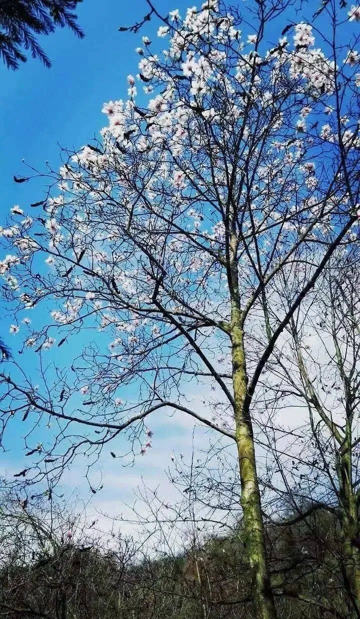 以上是当时发朋友圈的照片,我说:吴家后山,山高路陡,辛夷花的美,在心里,不在照片里。