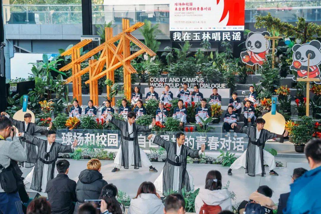 玉林三巷·民谣里,“球场和校园·来自世界杯的青春对话”文化交流活动在这里火热开展,来自不同国家和地区的年轻人们交流各地特色文化,用乒乓球架起友谊的桥梁。