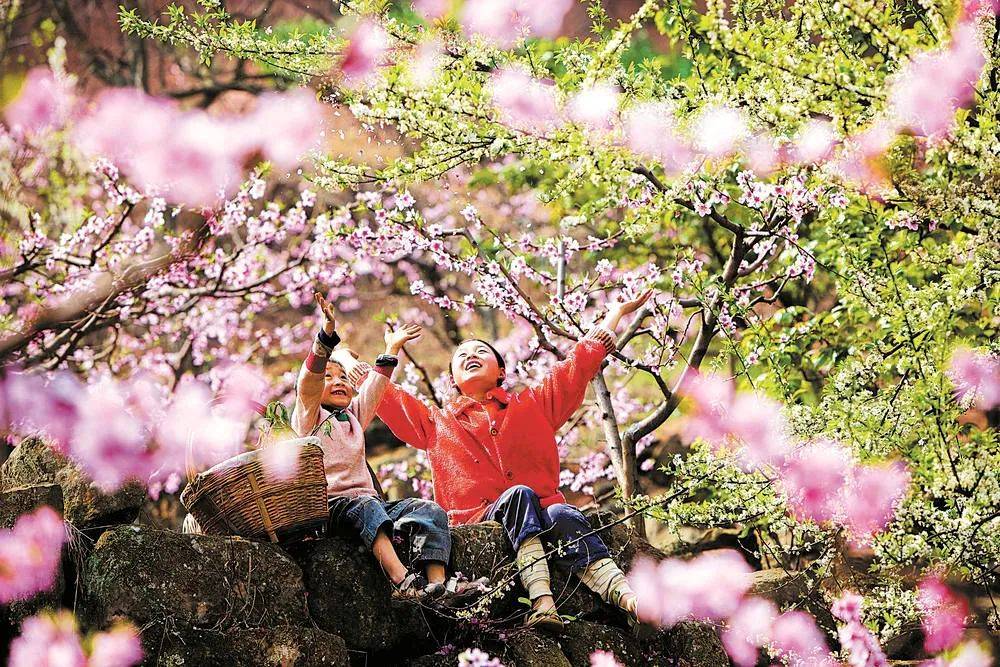 龙泉山上的春天,是灼灼的桃花,也是孩子们开心的笑脸。