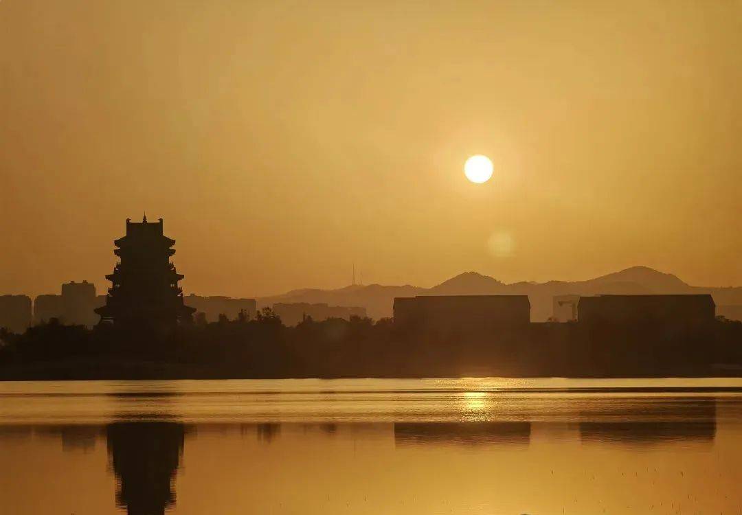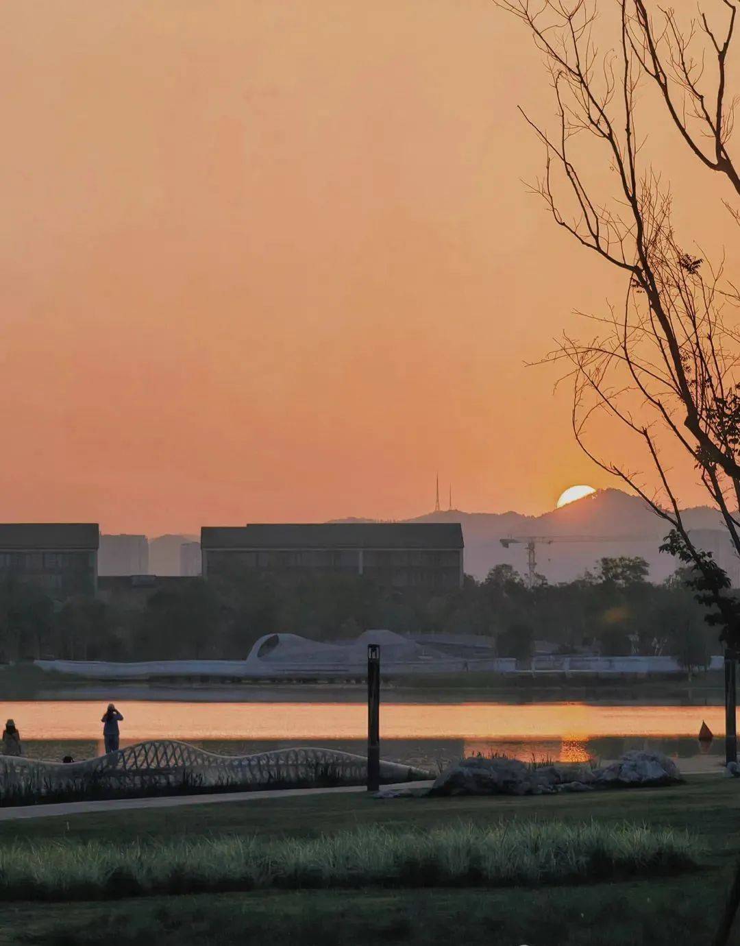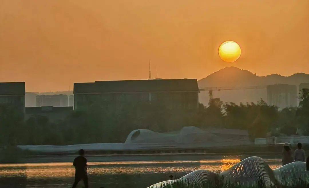 旁边晨跑的人们都停下来了,聚集在桥上,在湖边,远处还有勤劳的人在直播日出。有人在喊:“快看快看!跟咸鸭蛋黄似的冒油了!”还真是,那太阳边边上还粘着点灰云彩,活像流油的蛋黄芯。