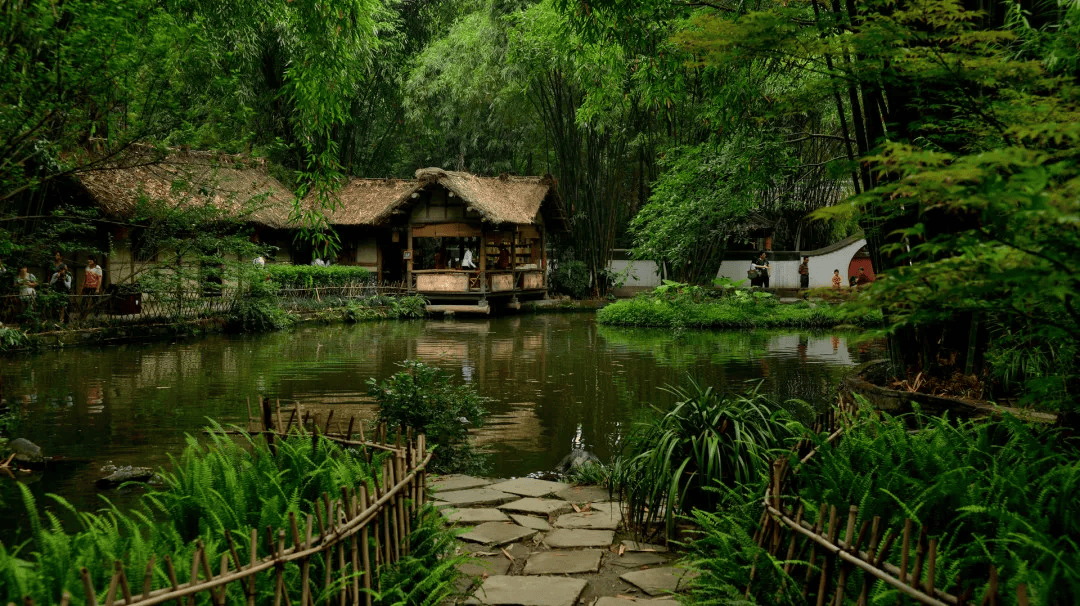安史之乱后,杜甫几经辗转,在成都西郊浣花溪边的茅草屋定居。浣花溪优美的自然环境,使得杜甫在此写下了一生中为数不多的风格清新明快的诗作。而今的杜甫草堂,保留了清代的格局,这座古典园林和浣花溪公园成为闹市中一片诗情画意的绿地。人们去草堂,是为了瞻仰诗圣,也为了从素湍绿潭与茂林修竹中感受天地灵性。