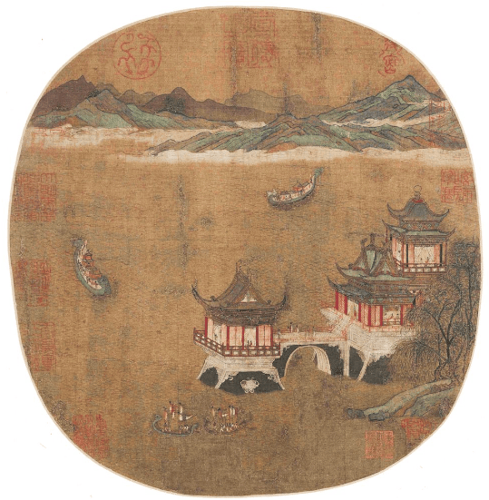 唐代李昭道的《龙舟竞渡图》,描绘了唐代宫廷里端午节龙舟竞渡的场面。