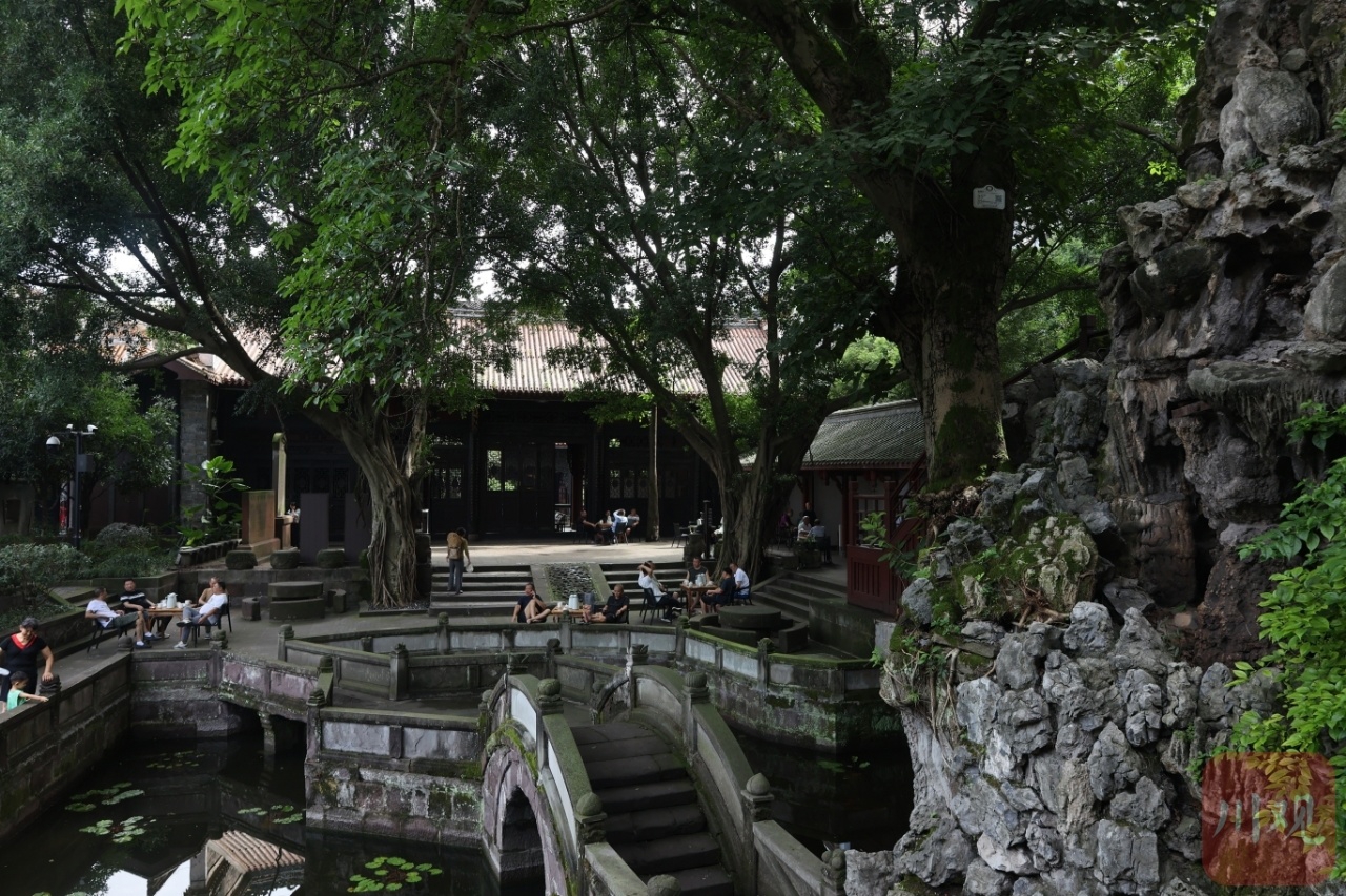 市民在春秋祠后园喝茶休闲。郭荞璐 摄