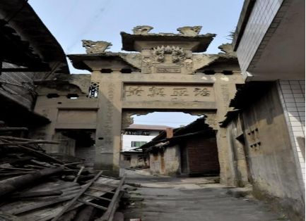 “天恩世赐”石牌坊:位于重龙镇谷田坝村二社,清光绪六年(1880)建。该坊坐西向东,石质结构,三门四柱三楼,宽4.8米,通高6.4米,柱径0.5米。坊上横额镌“天恩世赐”四字,上镌“光绪”、“圣旨”竖额;中柱下联被糊盖,上联为“三代荣封叨凤诰”,题记为“清光绪庚辰六年”。