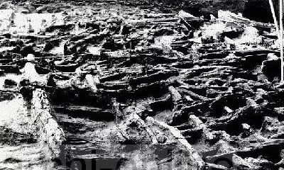 1986年发掘了1800平方米,所有探方中全是密密麻麻的木建筑构件,主要有圆木、方木、木板、竹篾、圆竹及茅草等;建筑基础部分,采用地梁与打桩两种形式。
