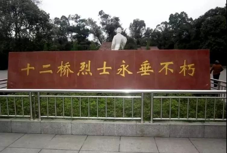 十二桥烈士墓位于成都市文化公园内、二仙庵侧。1949年12月7日成都解放前夕,国民党特务将关押在成都将军衙门内的36位共产党员、进步人士和爱国青年学生,杀害于通惠门外十二桥附近。1950年1月建立烈士陵园。这些烈士为了祖国的解放和人民的幸福,不惧严刑拷打,面对敌人的屠刀大义凛然慷慨赴死,用鲜血和生命谱写了革命志士壮丽的人生赞歌!
