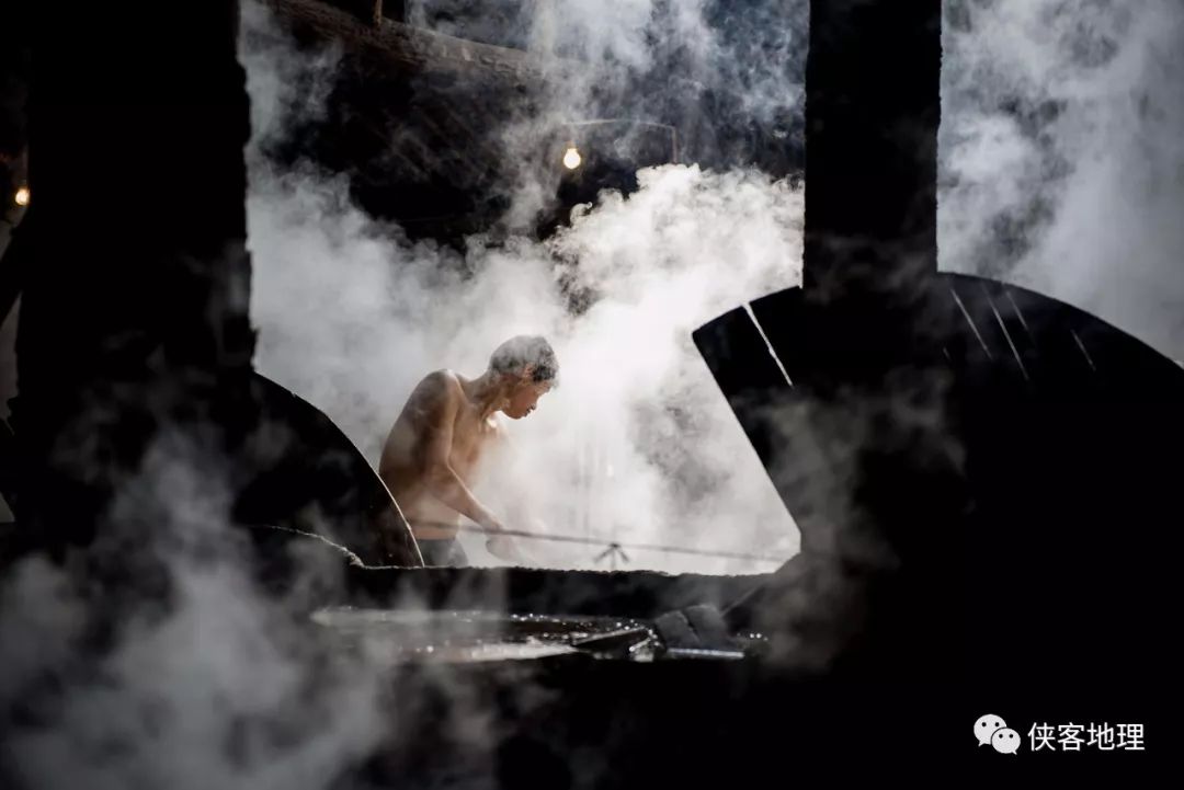 ▲四川盆地出产盐卤,盐的开采历史达2000多年,上图为自贡燊海井的人工制盐作坊(@李忠东)