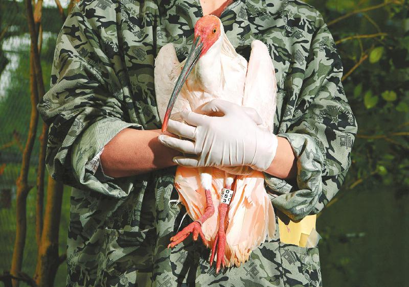 来到四川后的它们在口味上也有了一些变化,都很喜欢饲养员特意加在食物中的黑鱼和虾。从9月开始,基地内的朱鹮开始陆续换毛,羽毛的颜色变成了粉红色。“现在朱鹮的种群正在扩大,我们已经在乐山找到适合野外驯化的基地,三代朱鹮的健康成长为今后的野化训练打下了基础。”杨海琼告诉记者。