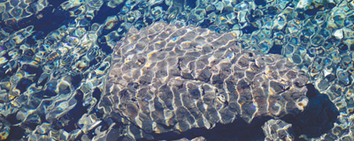 五彩池是众多海子中最小巧精致的。池中的藻类、钙化物、岩石块在阳光散射下让整块水域划分出鹅黄、墨绿、淡蓝、藏青、青紫色彩,斑斓耀眼,摄人心魄,像一块宝石镶嵌在群山环抱中,煞是好看。
