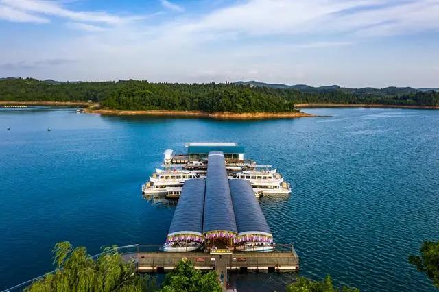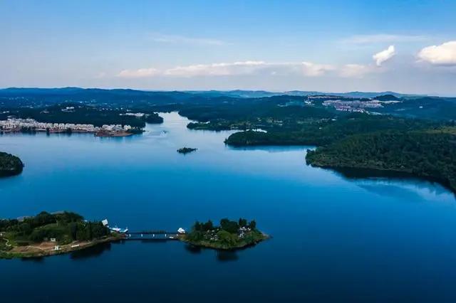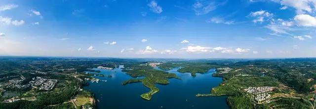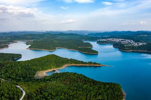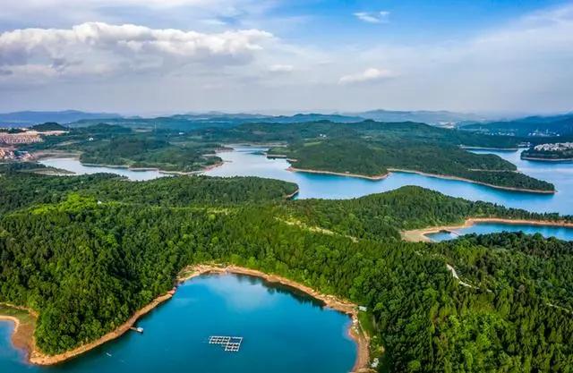 仙海湖水域辽阔,岛屿众多,湖岸曲折,形成“山抱水,水漫山”“山衬水,水映山”,山水一色,水乳交融的天然画卷。