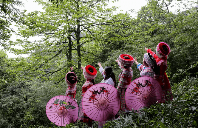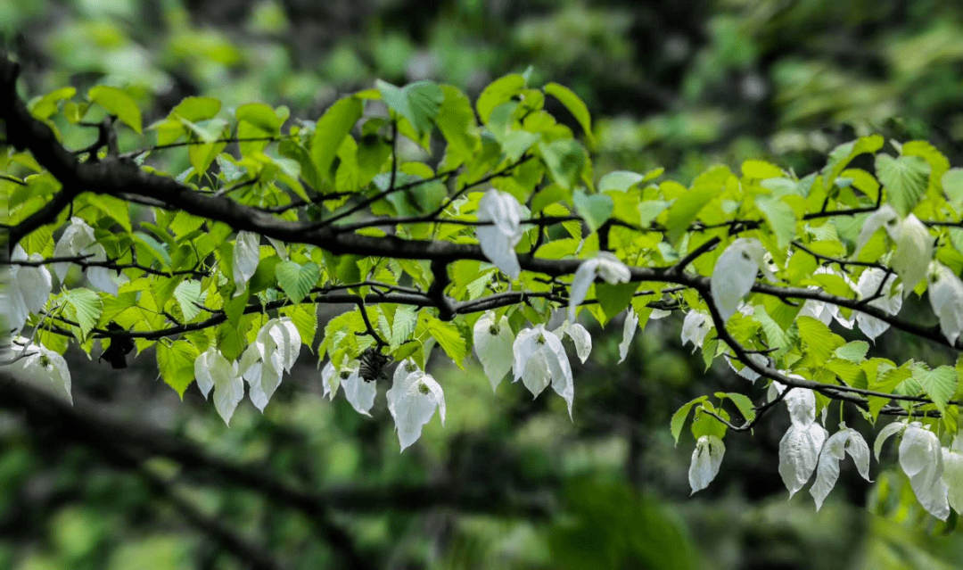 广袤无垠的珙桐树林,直追天际,象征着这一方水土的天人合一,幸福绵长。春末夏初,每当珙桐花开时季,万绿丛中,雪白纯洁的珙桐花随风飘动,宛如万千白鸽飞翔,洁白的苞片酷似鸽子的两翅,紫红的花序如同鸽头,黄绿色的柱头像鸟啄,蹦蹦跳跳,纷呈多姿,万花齐动,慰为壮美。