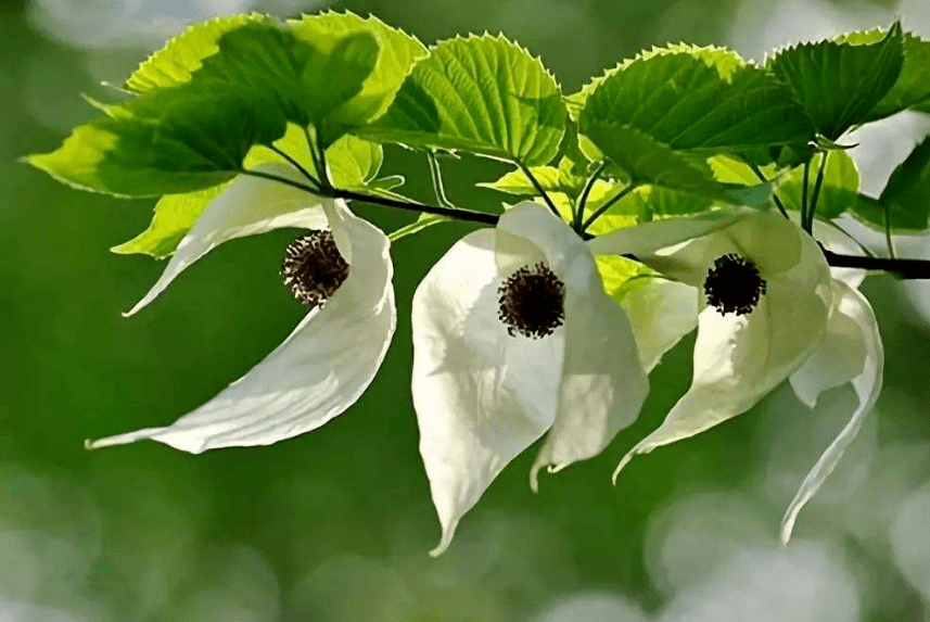 珙桐,落叶乔木,可生长到15~25米高,叶子广卵形,边缘有锯齿,色花奇美,是1000万年前新生代第三纪留下的孑遗植物。