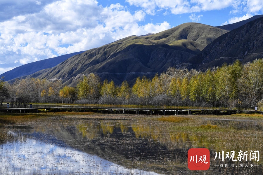 10月14日,甘孜州石渠县邓玛湿地旅游景区秋色正盛。邓玛湿地内的正科湿地公园拥有甘孜州全州面积最大的沙棘林,万亩野生沙棘林颇为壮观。