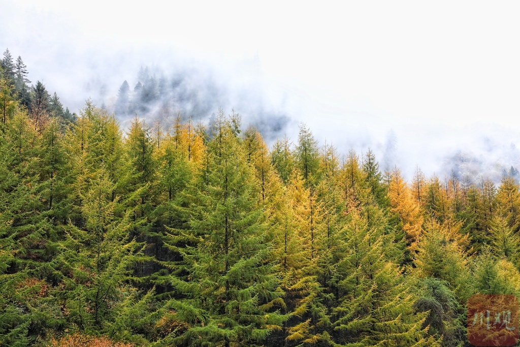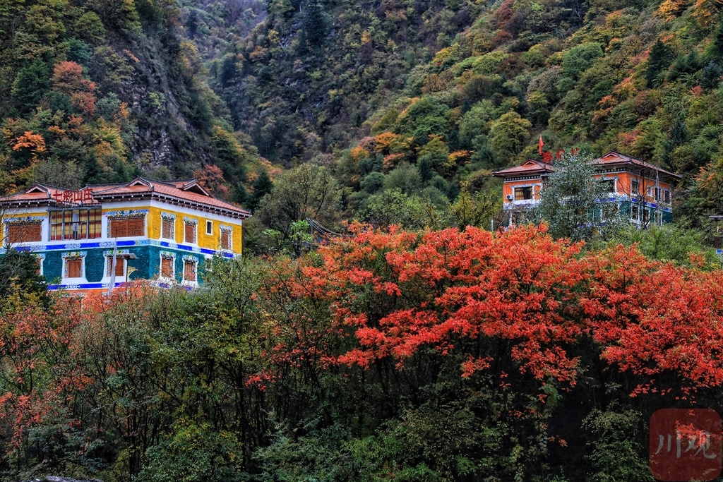 每到秋天,阿坝州黑水县就开始披上“彩妆”。火红、淡红、棕红、深黄、鹅黄、米黄、嫩黄、酱紫、墨绿、浅绿,把黑水妆扮成一幅颜面“层出不穷”的彩林画卷。