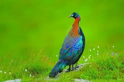 绿尾虹雉是人类目前发现的三种虹雉之一,虹雉是喜马拉雅山及其余脉的特有物种,一类生活在高山的大型雉类,其得名于雄鸟羽毛具有彩虹般的金属光泽,是中国特有物种。