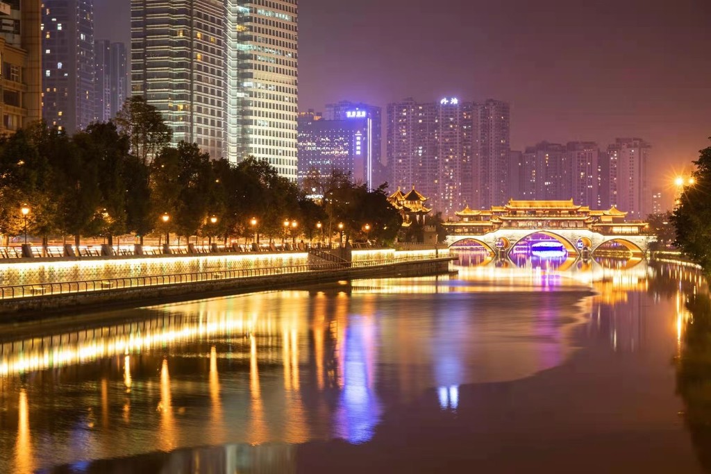 尽管如今锦江已经丧失航运功能,不过在城市生态、景观等方面却仍继续泽润着蓉城人。在今天的合江亭处,南河和府河交融,绿波宛丝绦,怀抱着城市。白天,从这里眺望出去,两边街道车水马龙;夜晚,在灯光水影的“锦江夜游”中,可以回望百年前的百舸争流之景。
