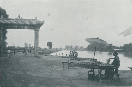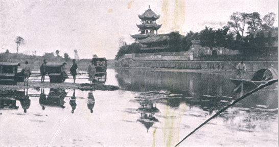成都市第一郊外公园大门外锦江沿岸风光 。 《世界地理风俗大系.第3卷-支那[下]》(新光社 編)日本东京共同印刷株式会社