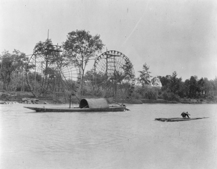 成都南门外锦江上之水车与筏子。 [美]西德尼·戴维·甘博 杜克大学图书馆