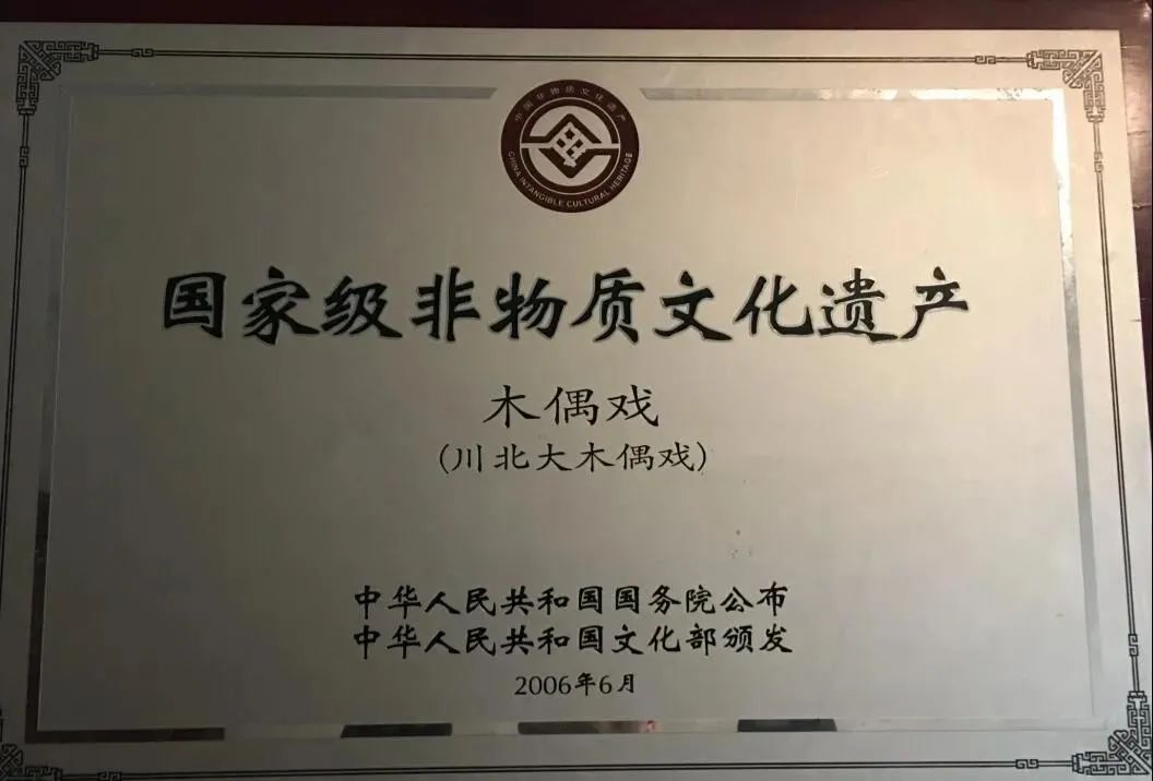 川北大木偶,首批国家级非物质文化遗产(图片来源:南充微报)2007年10月,川北大木偶受文化部派遣,代表中国参加第35届墨西哥塞万提斯艺术节并深受好评。2009年,四川省大木偶剧院荣获文化部、人事部联合表彰的全国文化系统先进集体和商务部、文化部、广电总局、新闻出版总署联合颁发的2009-2010年度国家文化出口重点项目。2012年,川北大木偶戏《彩蝶的神话》在第21届国际木偶联会暨国际木偶艺术节南充主题会场开幕式首演,获最佳剧目奖;参加法国沙勒维尔市第14届国际木偶艺术节,获得国际木联高度评价;参加克罗地亚第20届武科瓦尔春季木偶艺术节,获“最佳剧目奖”;联合国教科文组织国际木联主席达地、秘书长雅克斯等对川北大木偶戏《龙门传说》大加赞赏。