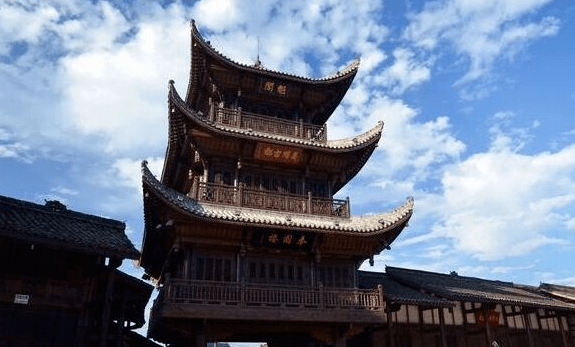自阆中古城出,一条弯弯曲曲的公路直通老观镇山顶。俯瞰其下,古镇雄踞于此,衔接四方。其中一幢古建筑巍然耸立,虽历经风雨,却风采依然,其楼阁上书写着几个大字——“奉国楼”。它像屹立在川东北的一块文化活化石,彰显着老观古镇的悠久历史。
