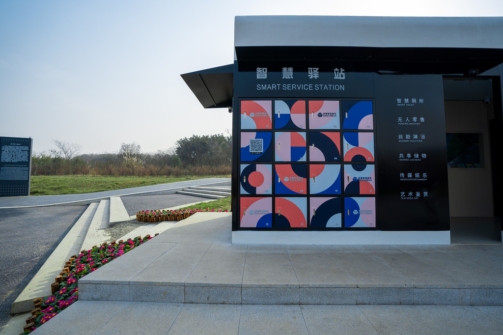 同样智慧而有趣的,还有公园里的休息驿站。这个容纳了智慧厕所、共享储物柜、自助淋浴、无人零售等多功能于一体的智慧化服务化体验,在承担厕所传统功能的同时,更拥有一幅强大的“智慧大脑”。让这个面积不到10平方米的公共空间,俨然变身成为一个小型科技馆。