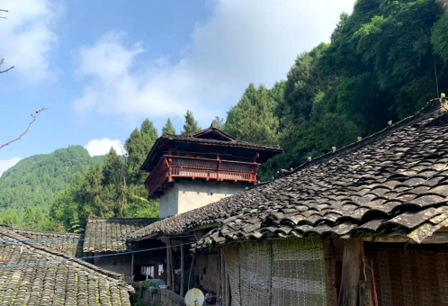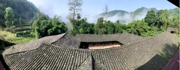 站在远处观望,碉楼下有一片青瓦四合院。碉楼四周,山峰清秀、人家较少。由于所处位置较高,俯瞰山下,薄雾环绕、如梦如幻。不禁让人感叹,营山境内竟然还隐藏着这样一处山色风光。