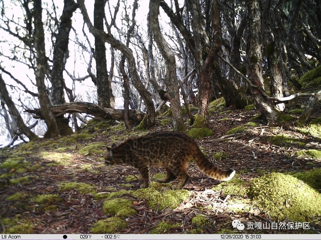 近日,四川贡嘎山国家级自然保护区工作人员在整理红外相机照片时发现,2020年12月26日15点31分在贡嘎山保护区猎塔湖4290米一处杜鹃林(九龙县境内),拍摄到国家Ⅰ级保护动物亚洲金猫。这是首次在大雪山脉拍摄到亚洲金猫,是目前亚洲金猫分布海拔的最高纪录。