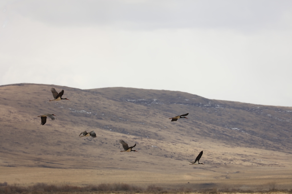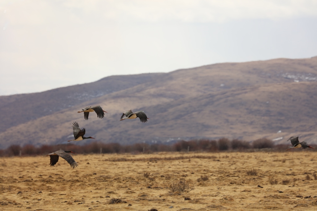 4月3日,国家一级保护动物黑鹳“大部队”,共16只活动在红原县安曲牧场附近的沼泽地带,3月15日的时候第一批“探路者”就抵达了红原大草原,这次算是大部队来啦!