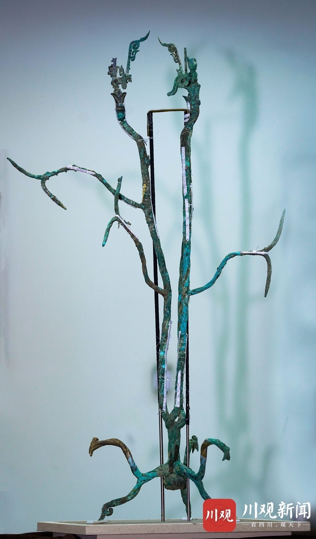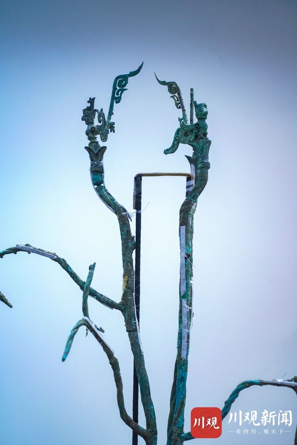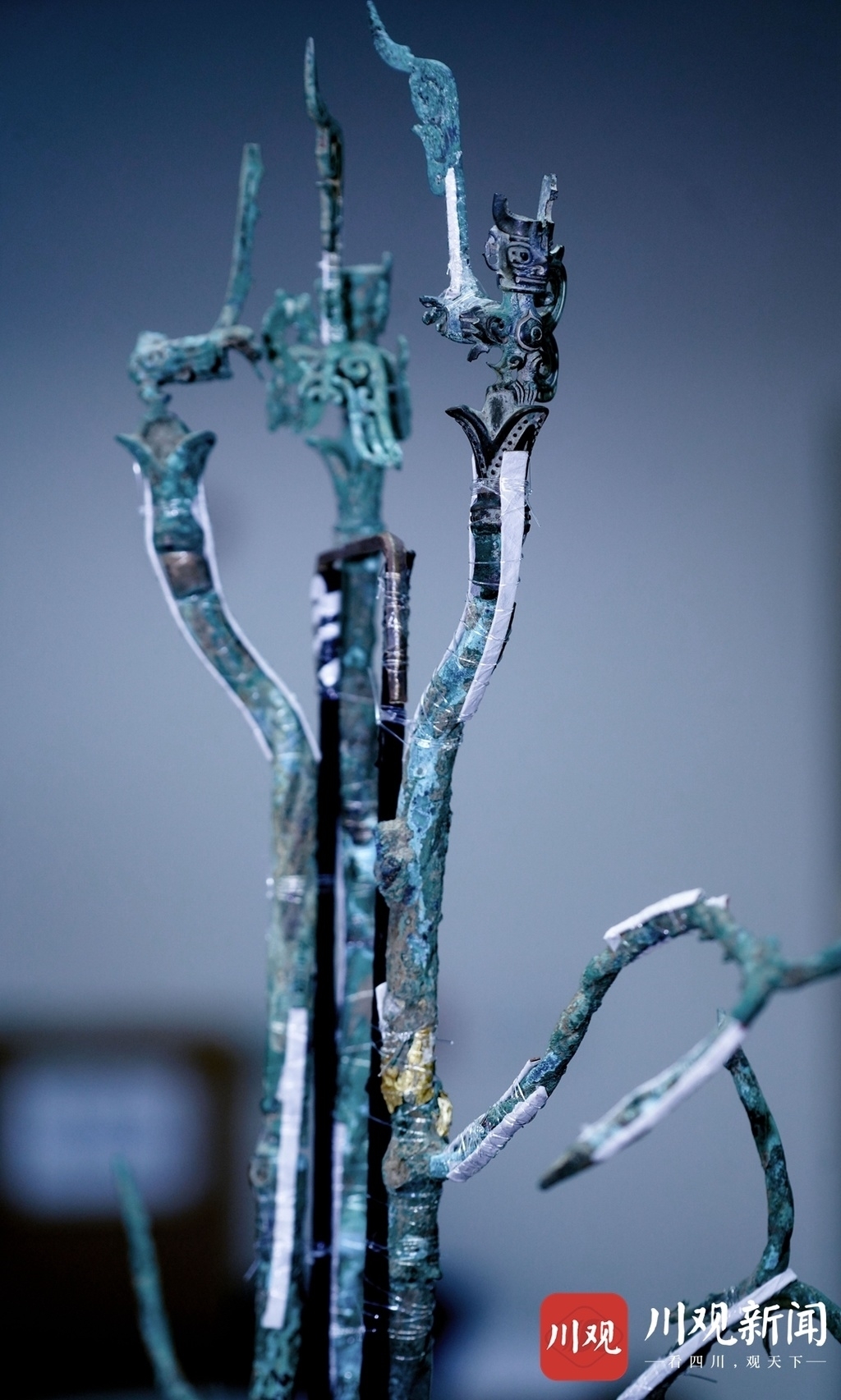 据介绍,这株神树在完全修复完成后,将在博物馆公开展出,与三星堆镇馆之宝——1号青铜神树一起,共同展示三星堆人神树崇拜的宗教信仰以及杰出的艺术创造力。