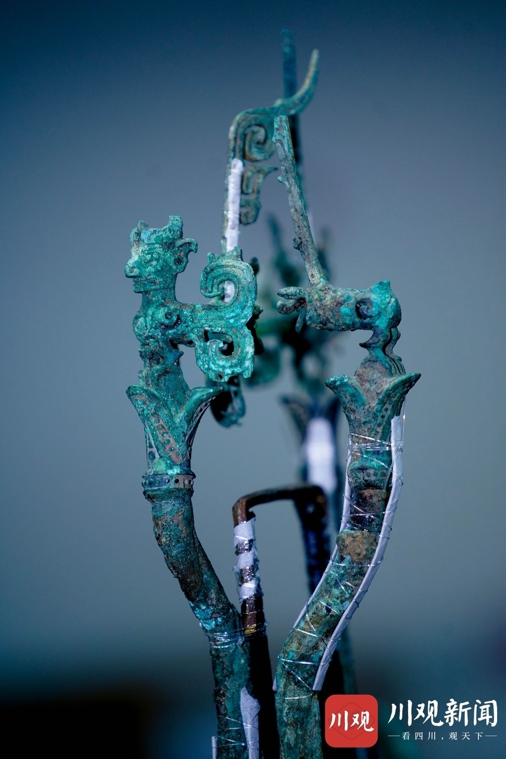 在神树拼接过程中,郭汉中不仅让两件独立的人首鸟身像重新飞上了树顶,还为它们找到了散落多年的精美尾翎,成为修复过程中的一大惊喜。