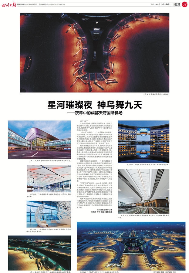 6月11日,成都天府国际机场“天府之眼”发出耀眼的蓝光。