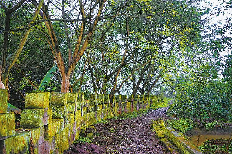 沿着东门城墙一路向江岸行走,可见南门的基础墙石同样风化严重,应为宋代遗存。2004年,当地原址重建了南门和西门一带的城墙,再现了当年城内军民据险抗敌的情景。到达江岸,一处名叫猫嘴岩的下方,有阔约20余亩的农田。700多年前,它是宋军操练水陆军事的校场。而江心的大中坝,据说与合江的石盘寨、泸州甘余渡一起,并为南宋泸州的水军基地。