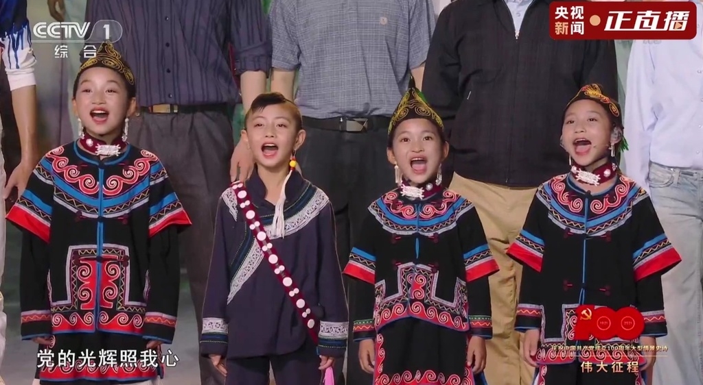 “唱支山歌给党听,我把党来比母亲……”伴随着稚嫩的童声和来自大凉山充满阳光的笑容,在第四篇章《锦绣前程》中,吉合拉作、俄地惹汉等8个来自凉山州昭觉县的小朋友,领唱歌曲《唱支山歌给党听》,宣示中国共产党人引领中华民族完成脱贫攻坚、实现全面小康的伟大胜利。