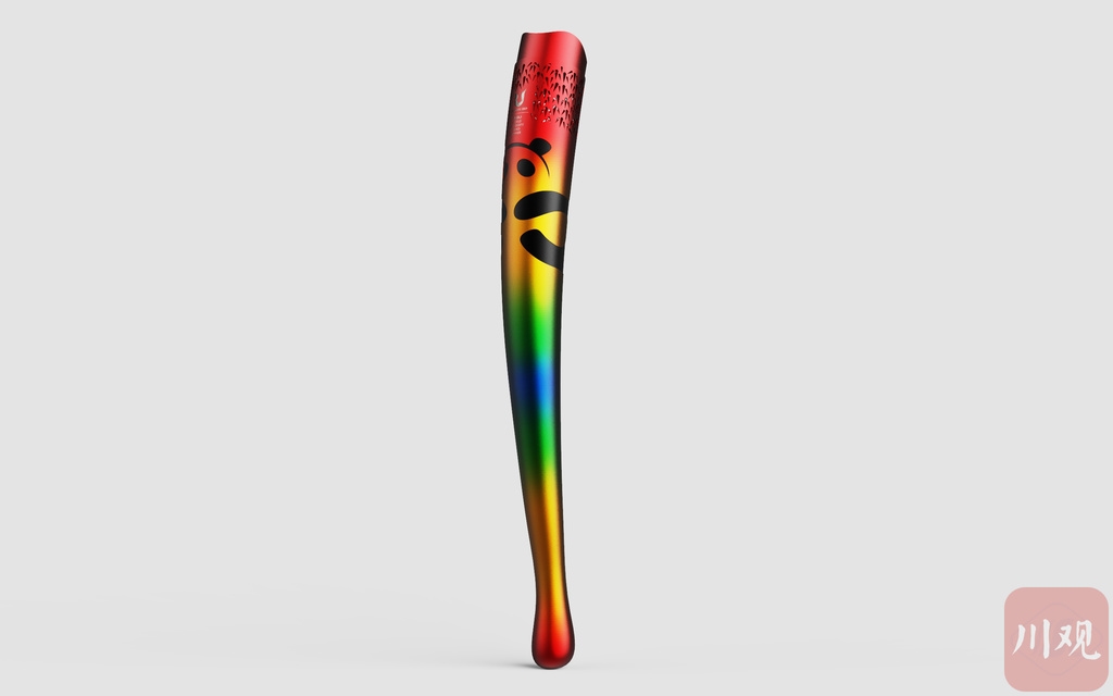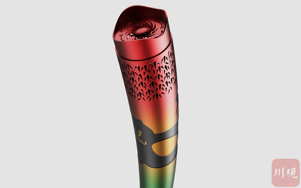 火炬正面,以国际超级IP、四川“活化石”——大熊猫为主元素,展现热情奔放、乐观包容的文化态度;