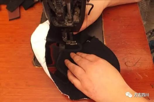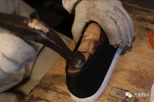将鞋面、鞋帮和鞋底缝为一体,取“楦头”顶入鞋内,修正布鞋外形存在的不足。然后烘干一段时间,待布鞋的面料内浆完全干透、布鞋面料完全定型,一双唐昌布鞋就做好了。