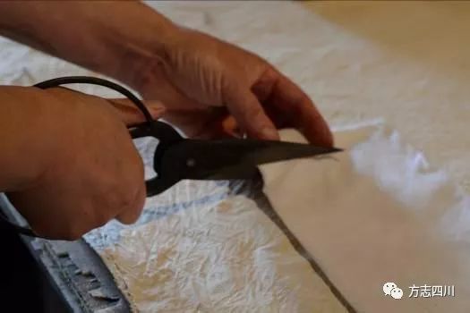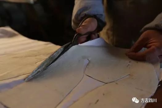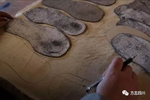 首先是制作布壳。打布壳是唐昌布鞋制鞋的开端,也是鞋底、鞋帮的基础。制作唐昌布鞋的鞋壳,在棉布上涂抹浆糊时要均匀,浆糊与布充分接触,在充足的阳光下一次性晒干,裁剪成所需的形状,初步制作成鞋帮和鞋顶。