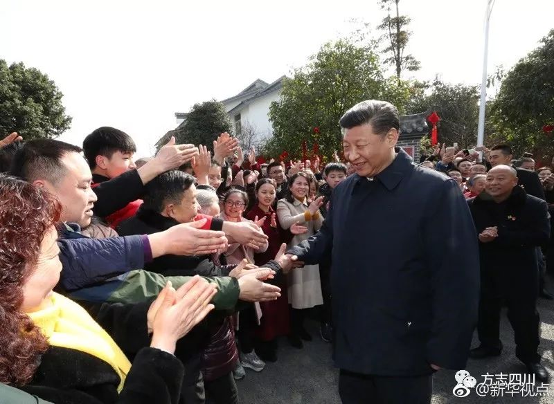 2018年2月12日上午,离开映秀镇后习近平总书记乘车来到成都市郫都区唐昌街道战旗村。在“精彩战旗”特色产业在线服务大厅,习近平仔细观看了“互联网+共享农业”互动种养平台,鼓励村民用好互联网、打开产销路子。在“唐昌布鞋”展示台前,村民热情地拿起一双布鞋想送给总书记,习近平笑着说:“我花钱买一双!”