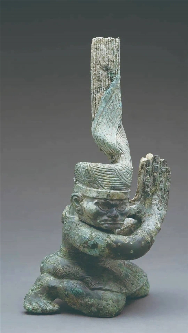 三号坑出土铜顶尊跪坐人像
