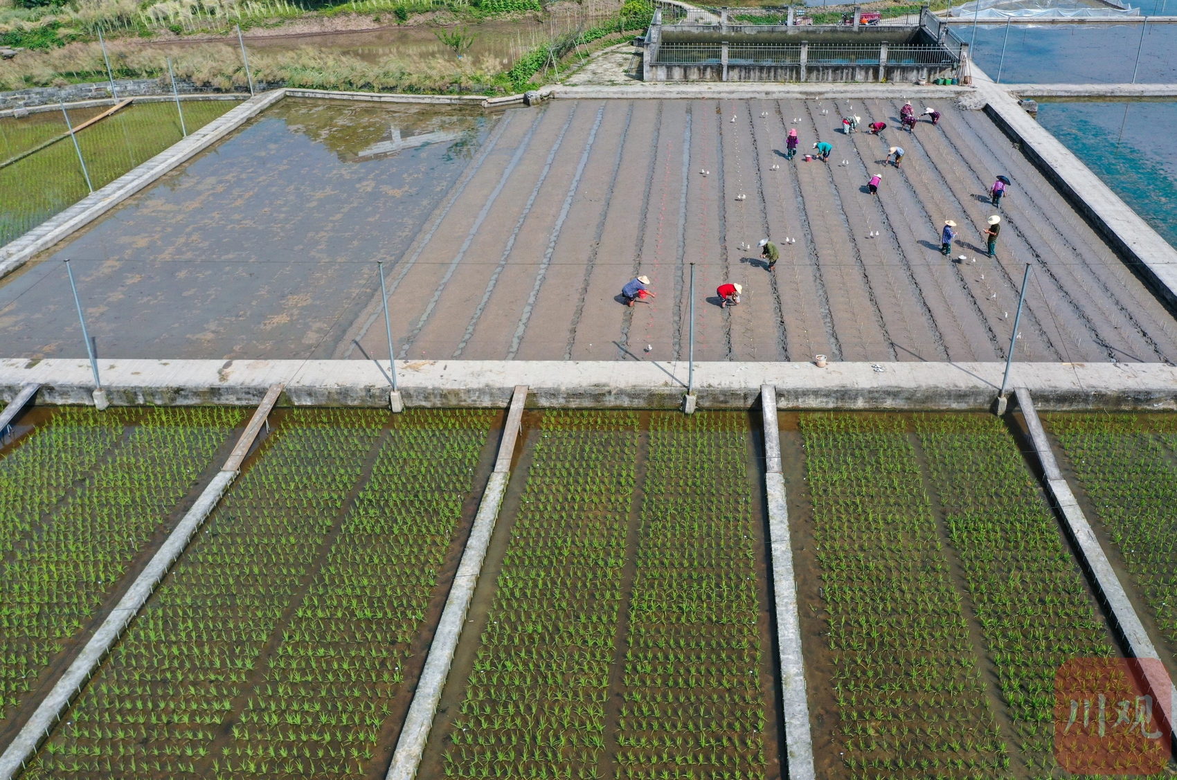 科研人员在四川省农业科学院水稻高粱研究所泸州基地的试验田播下南繁水稻材料。