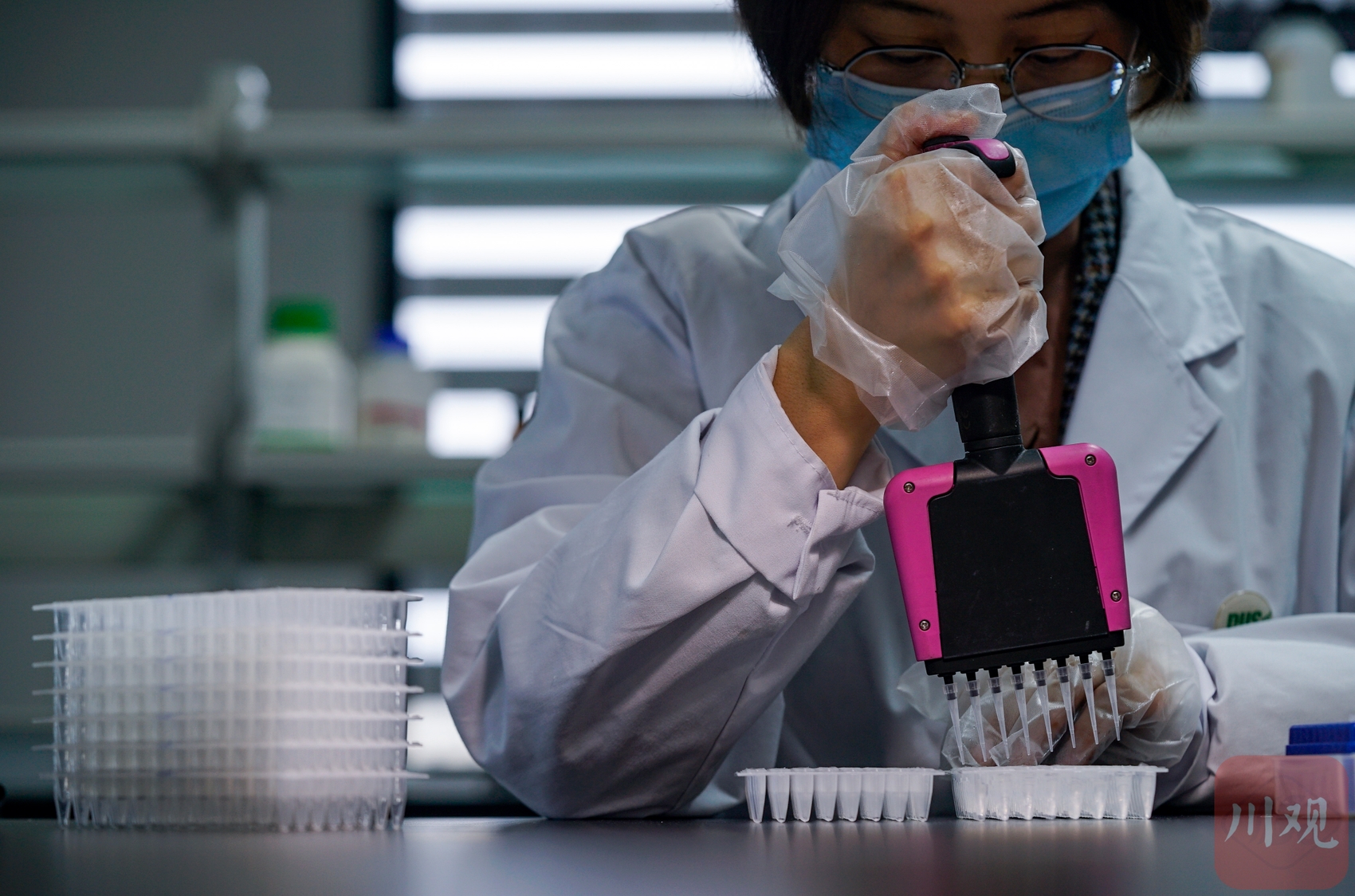 邛崃天府现代种业园国家品种测试西南分中心的实验室内,科研人员正在做水稻种子的PCR测试。