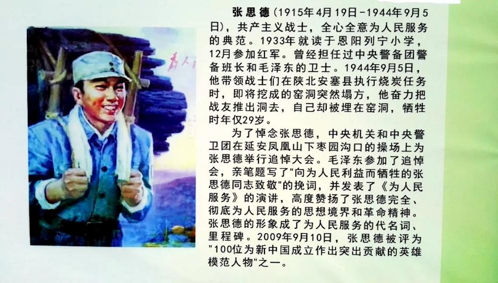 恩阳中学宣传栏中关于张思德的介绍(蓬州闲士 摄)